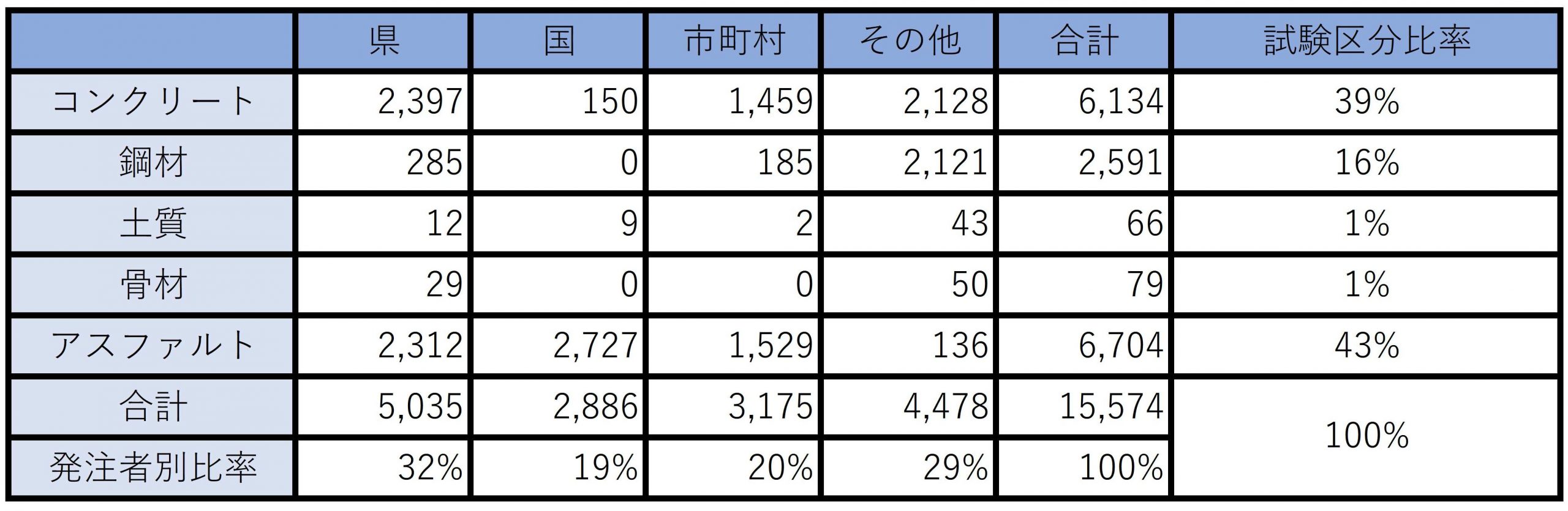 令和6年度 建設材料試験数実績(試料数)